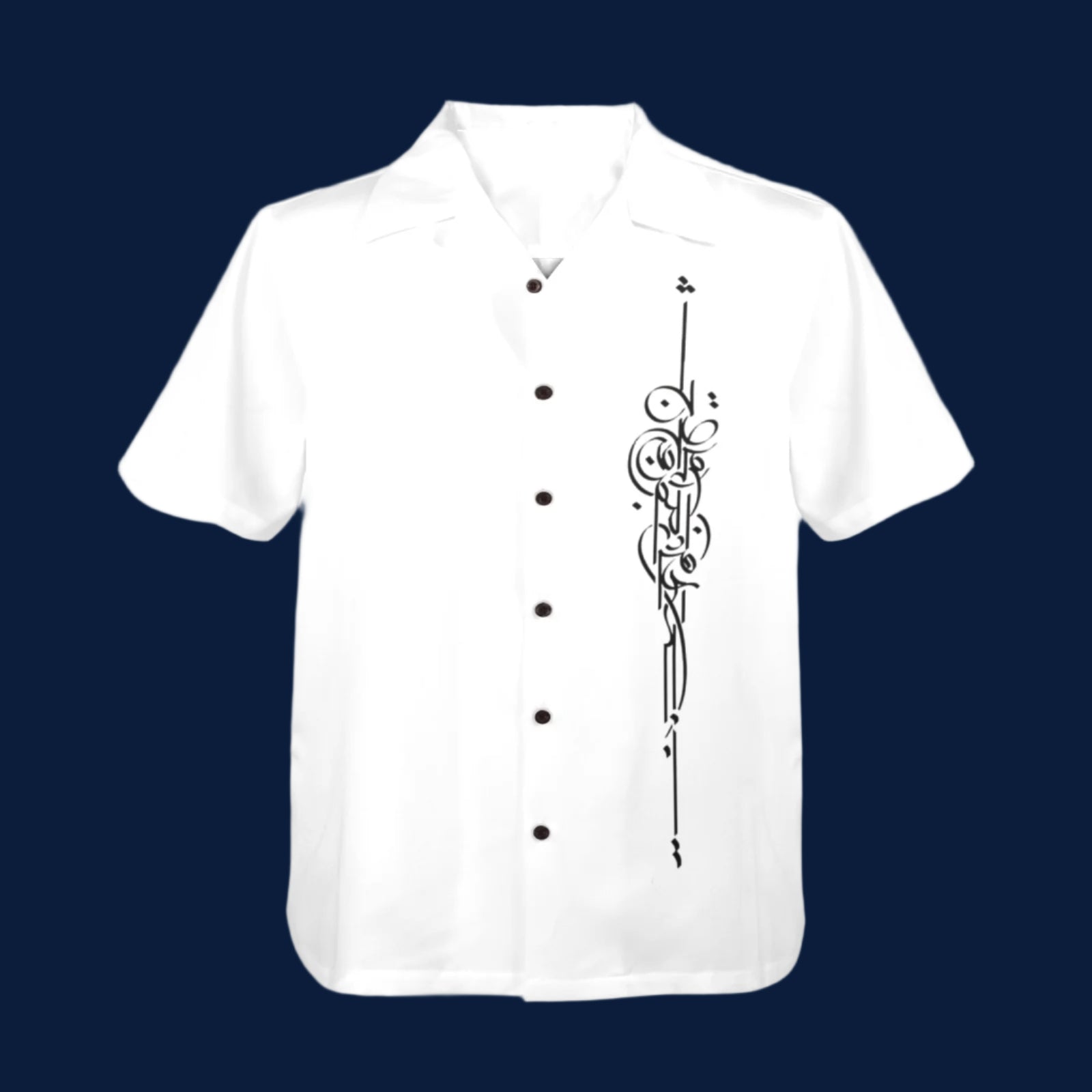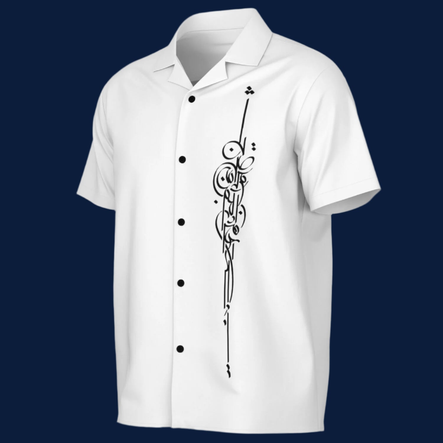 Elevate your wardrobe with this elegant short-sleeve button-up shirt, featuring a striking vertical design in black Persian calligraphy. The quote — "این صبر که من میکنم افشردن جان است" — translates to "This patience I endure is the squeezing of the soul," capturing the deep emotion and poetic heritage of Persian literature.